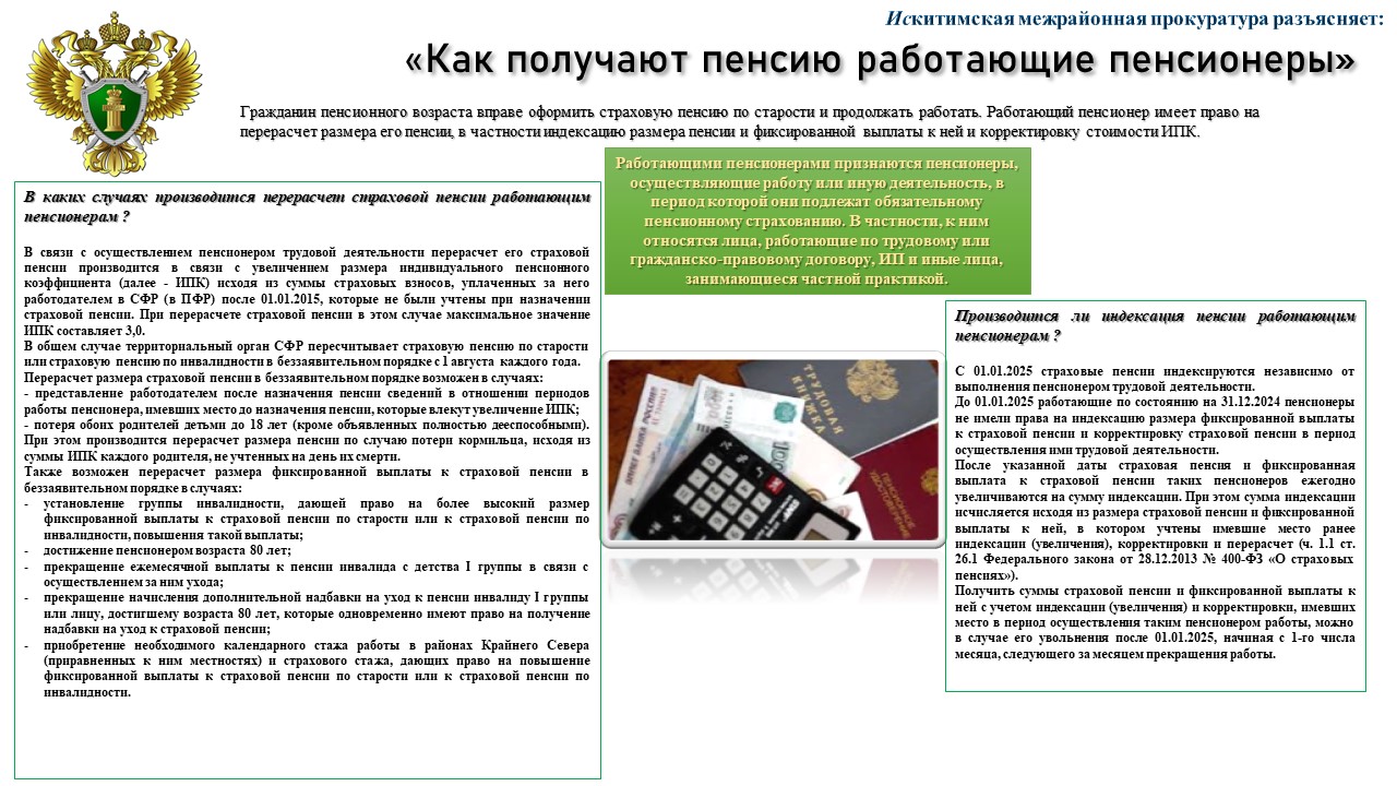 ВНИМАНИЕ! Прокуратура информирует. Как получают пенсию работающие пенсионеры
